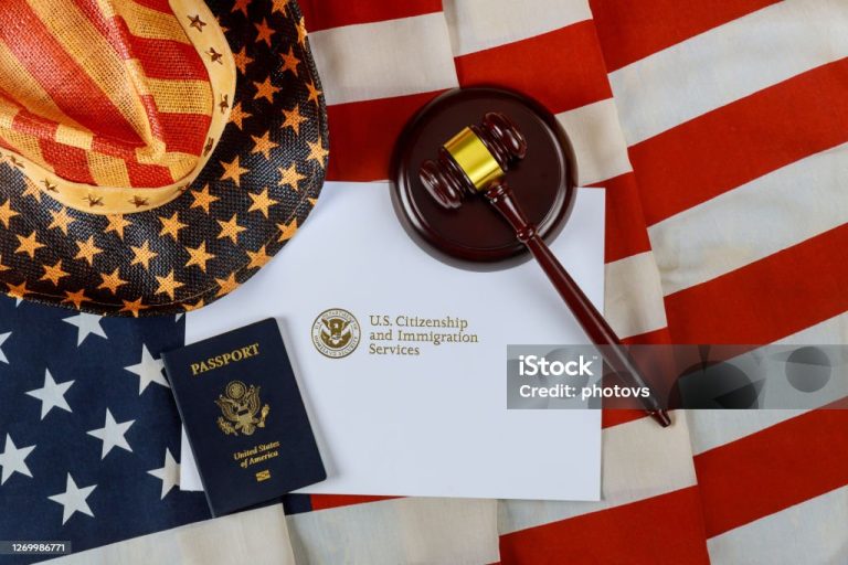 U.S deportation Immigration justice and law concept American flag Official department USCIS Department of homeland Security United States Citizenship Immigration Services